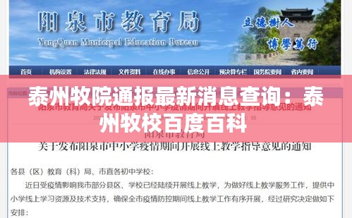 泰州牧院通报最新消息查询:泰州牧校百度百科