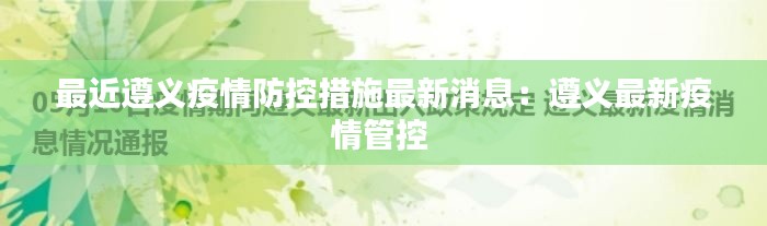 随着新冠疫情的不断发展,我国各地疫情防控措施也在不断调整和优化。近日,遵义市疫情防控指挥部发布了一系列最新消息,旨在加强疫情防控工作,保障市民的生命安全和身体健康。