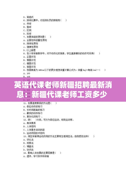 随着我国教育事业的不断发展,英语作为一门国际通用语言,其重要性不言而喻。为了提高新疆地区英语教学水平,满足当地教育需求,新疆各地纷纷启动了英语代课老师的招聘工作。以下是关于新疆英语代课老师招聘的最新消息。