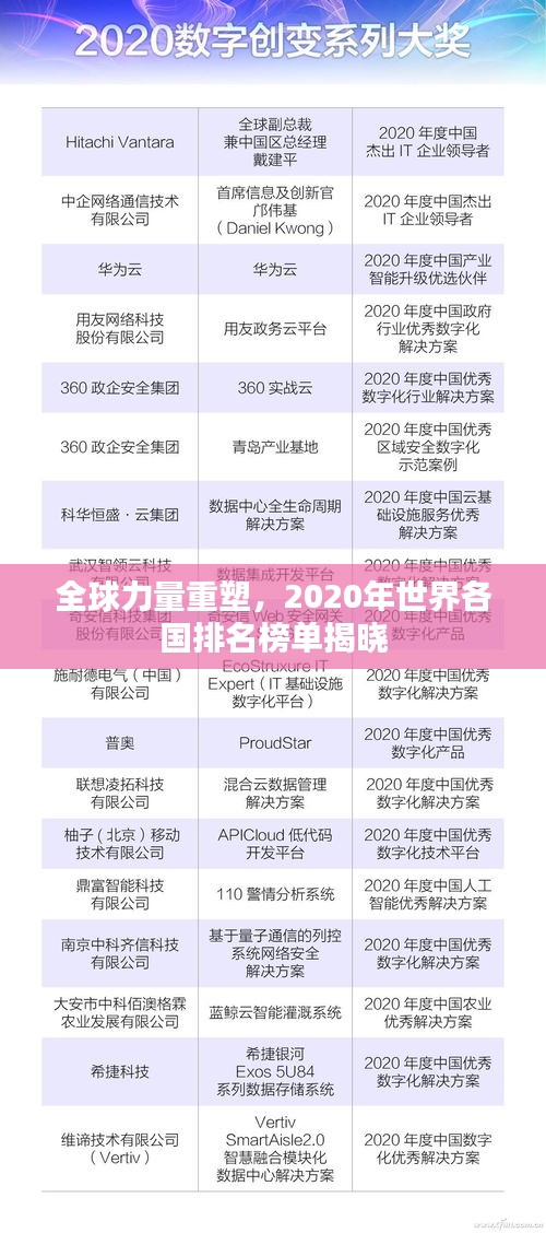 近年来,中国在全球舞台上的表现引人注目,经济持续快速发展,军事实力不断提升,科技创新能力日益增强,在2020年世界列强排名中,中国位列第二,成为全球重要的力量。