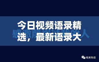 随着时代的发展,视频语录成为了人们日常生活中的一部分,它们简洁而富有哲理,能够激励我们前行,本文将为您带来最新的今日视频语录精选,让我们一起感受这些充满智慧的话语。