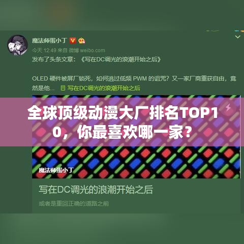 动漫产业在全球范围内持续发展,各种动漫大厂层出不穷,本文为您介绍顶级动漫大厂排名前十名,这些公司在动漫制作、创意构思、技术创新等方面均走在行业前列。