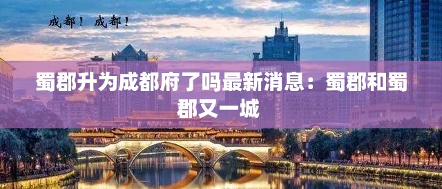 近年来,关于蜀郡是否升格为成都府的消息在网络上引起了广泛关注。随着地方行政区划调整的频繁出现,这一议题再次成为公众讨论的热点。本文将为大家带来最新的消息和相关信息。