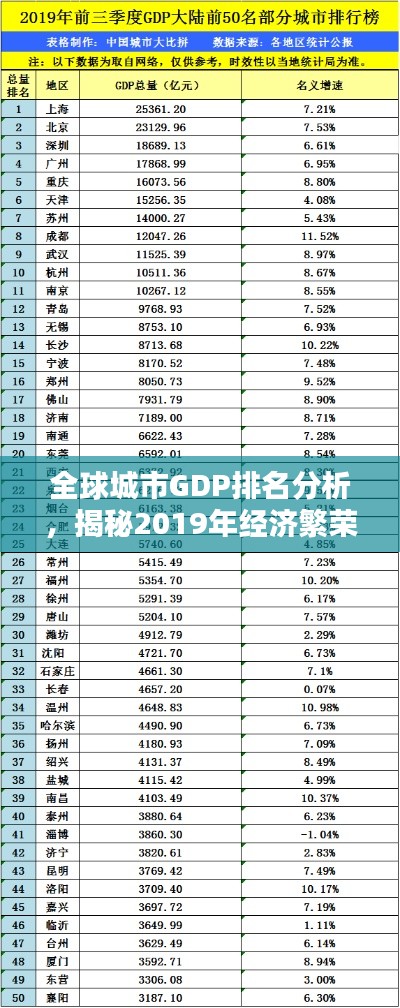 随着全球经济的不断发展,各大城市的 GDP 总量及其增长情况已成为衡量一个城市发展水平的重要指标之一,关于 2019 年世界城市 GDP 排名引起了广泛关注,本文将围绕这一主题展开分析,探讨全球各大城市的发展态势。