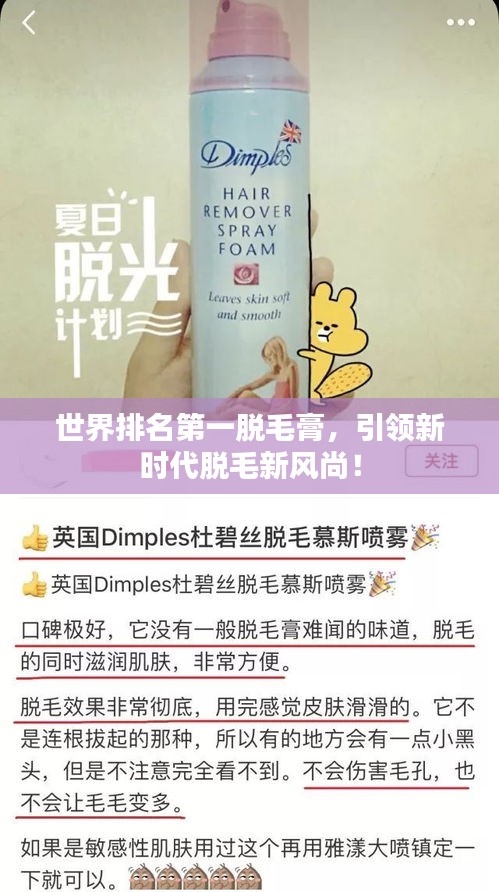 随着人们对美的追求日益增强,脱毛成为了越来越多人的选择,市面上琳琅满目的脱毛产品中,有一款脱颖而出,被誉为“世界排名第一的脱毛膏”,我们就来一起了解一下这款神奇的脱毛膏。