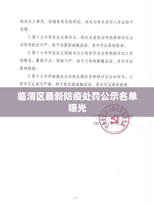 临渭区防疫部门公布了一批防疫处罚公示名单,引起了广泛关注,随着全球新冠疫情的反复,防疫工作已成为各级政府和民众共同关注的焦点,临渭区作为重要的城市区域,防疫工作的落实尤为重要,此次防疫处罚公示名单的公布,旨在提醒广大市民严格遵守防疫规定,共同维护公共卫生安全。