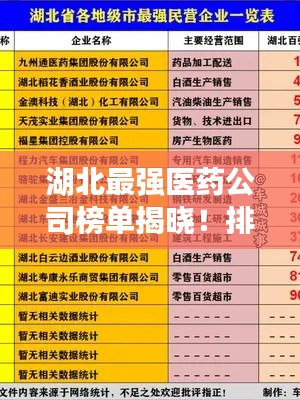 湖北省,作为中国的重要省份之一,医药产业蓬勃发展,众多医药公司崭露头角,本文将为您详细介绍湖北最强的医药公司排名,带您了解这些企业的实力与贡献。