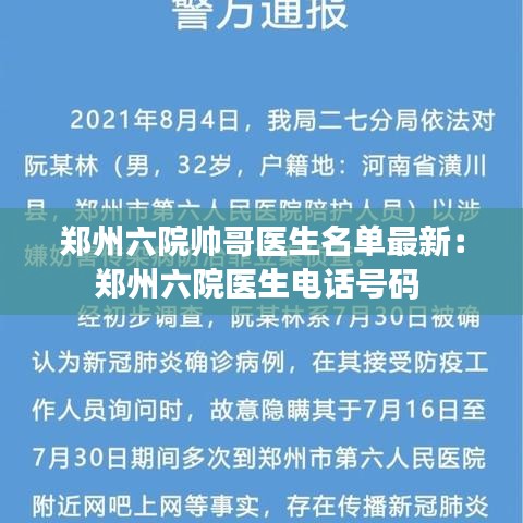需要注意的是,以上名单仅供参考,具体医生情况以医院官方公布为准。如果您有需要,可以前往郑州六院进行咨询和就诊。