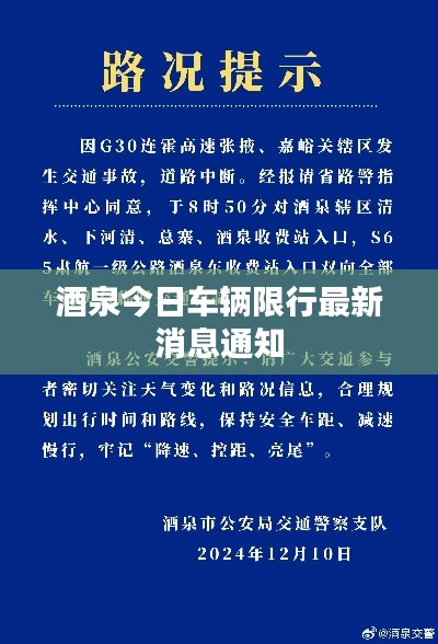 根据最新的消息,今日酒泉市是否限行需要根据当地政府的公告来确定,由于限行措施会根据不同的时间和情况做出相应的调整,因此建议广大车主及时关注当地政府发布的公告,以便及时了解是否限行。
