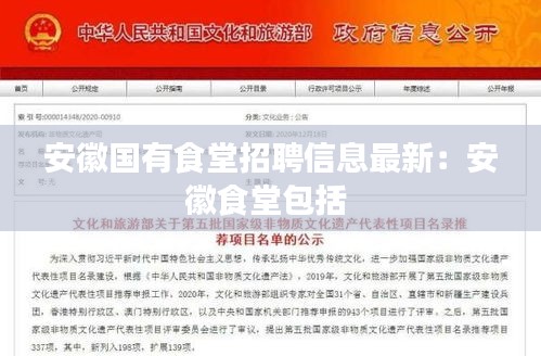 随着我国经济的快速发展,各地城市的基础设施建设不断完善,其中,国有食堂作为城市公共服务的重要组成部分,其服务质量和管理水平也得到了广泛关注。近日,安徽省多家国有食堂发布了最新的招聘信息,为广大求职者提供了良好的就业机会。