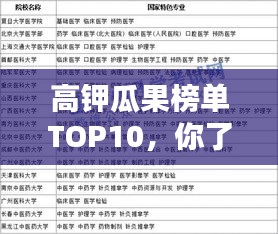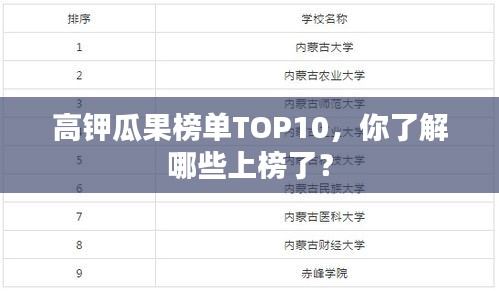 在追求健康饮食的潮流中,人们越来越关注食物中的营养成分,钾元素作为维持人体正常生理功能的重要矿物质之一,对于保持心脏功能、调节血压等方面起着重要作用,瓜果作为夏季消暑佳品,同时也是钾元素的良好来源,本文将为您介绍高钾瓜果排名前十名,让您在享受美味的同时,轻松摄取足够的钾元素。