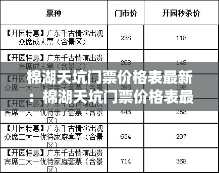 棉湖天坑,位于我国某省,是一处集自然美景与探险体验于一体的著名旅游景点。近年来,随着游客数量的不断增加,棉湖天坑的知名度也在不断提升。为了方便游客了解最新的门票价格,本文将为您详细介绍棉湖天坑的门票价格表。