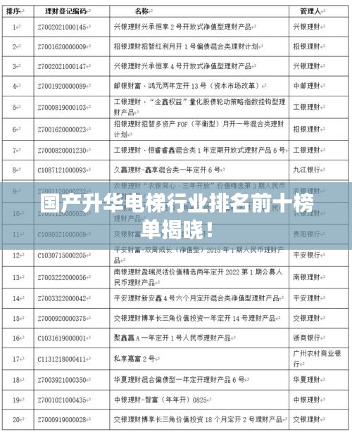 随着城市化进程的加快,电梯已成为现代都市不可或缺的一部分,国产电梯品牌在技术和品质上的不断提升,使得其在市场上占据了一席之地,本文将为您介绍国产升华电梯排名前十名,以供参考。