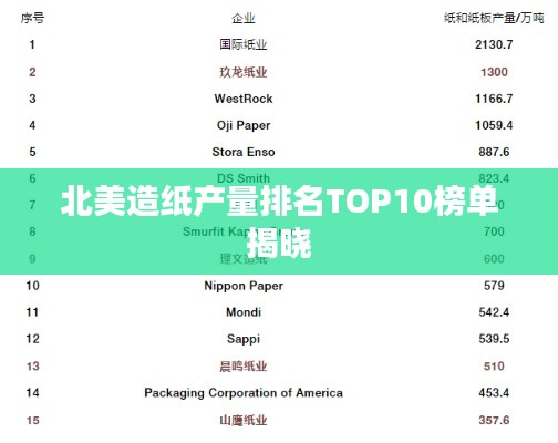造纸业是北美地区的重要产业之一,其产量和规模在全球范围内都具有重要地位,本文将介绍北美造纸产量排名前十名的相关情况,包括企业名称、产量、市场份额等信息。
