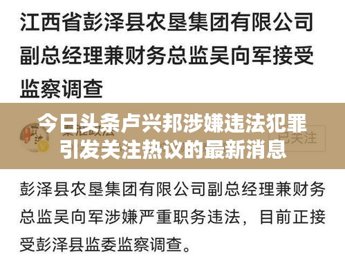 关于卢兴邦的消息在今日头条等社交媒体上引起了广泛关注,据悉,卢兴邦因涉嫌违法犯罪问题而备受瞩目,本文将围绕此事件展开,介绍卢兴邦的最新消息及相关背景信息。