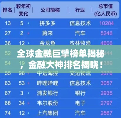 全球金融巨擘榜单揭秘,金融大神排名揭晓!