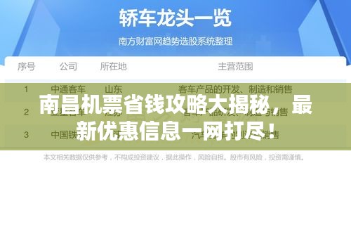 南昌作为江西省的省会城市,吸引了众多游客前来观光旅游,随着航空交通的日益发达,乘坐飞机前往南昌的旅客络绎不绝,如何在购买南昌机票时省钱,成为许多旅客关注的焦点,本文将为你提供一份最新的南昌机票省钱攻略,帮助你轻松预订到实惠的机票。