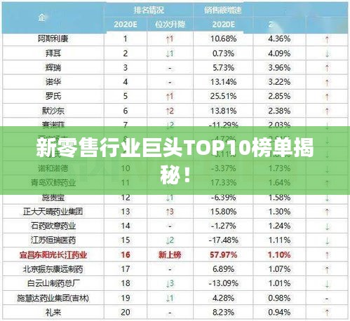 随着科技的飞速发展和消费者购物习惯的改变,新零售行业在全球范围内迅速崛起并持续发展,本文将为您介绍新零售行业排名前十名的企业,这些企业在创新技术、优化购物体验、提升供应链效率等方面表现出色。