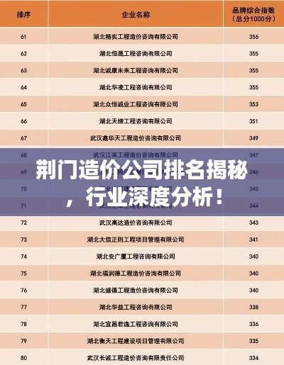 荆门市,湖北省的一个重要城市,近年来经济发展迅速,城市建设日新月异,随着城市建设的不断推进,荆门造价行业也得到了长足的发展,本文将探讨荆门造价公司的排名及相关行业分析。