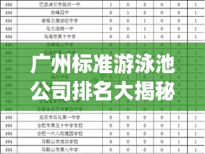 广州,作为中国南方的重要城市,游泳文化盛行,游泳池建设亦是非常普及,随着市民对游泳健身的需求日益增长,广州的游泳池公司如雨后春笋般涌现,本文将为您介绍广州标准游泳池公司的排名,以便您了解行业内的重要参与者。