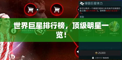 音乐、电影、体育等领域中,巨星璀璨,各具特色,本文将为您揭晓世界顶级巨星的排名,带您领略他们的风采。
