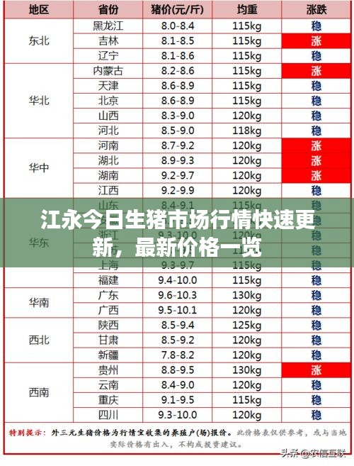 本文介绍了江永今日生猪最新价格的情况,江永地区的生猪价格受到多种因素的影响,包括市场需求、供应情况、季节性因素等,建议广大养殖户和消费者密切关注市场动态,做好应对措施,本文也提供了对养殖户和消费者的建议,希望能对大家有所帮助。