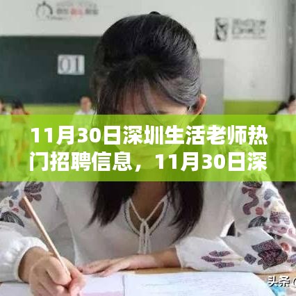 随着社会的不断发展,家庭教育的重要性日益凸显,生活老师作为现代教育体系中的新兴职业,逐渐受到广泛关注,特别是在深圳这样的国际化大都市,生活老师的需求愈加旺盛,11月30日发布的深圳生活老师招聘信息,无疑为求职者提供了一个重要的择业机会,本文将围绕这一招聘信息,从不同角度探讨其背后的利弊与个人立场。