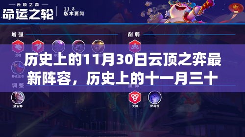 十一月三十日,这是一个充满神秘色彩的日子,在云顶之弈的世界里,这一天仿佛被赋予了特殊的意义,随着版本的更迭和英雄的调整,云顶之弈的最新阵容也在不断变化,就让我们一起踏上探索之旅,回顾历史上的十一月三十日,看看云顶之弈最新阵容的演变之路。