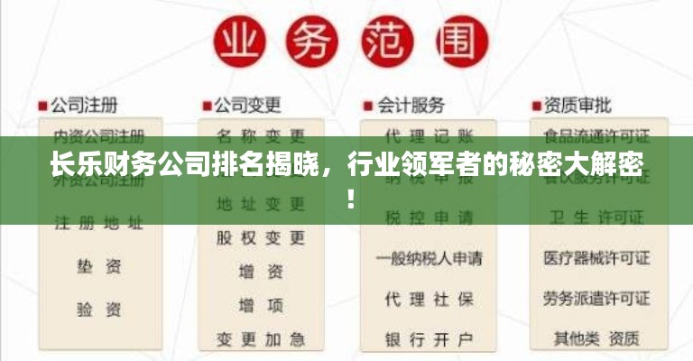 随着经济的繁荣和企业的蓬勃发展,财务公司在现代经济体系中扮演着越来越重要的角色,长乐财务公司亦是如此,它们在提供金融服务、支持企业发展等方面发挥着关键作用,本文将为您揭示长乐财务公司前十排名的秘密,带您了解这些行业领军者的魅力所在。