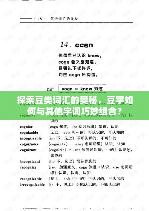 在探寻与“豆”相关的词汇时,我们不禁要思考,“豆”这个字是如何与其他字词组合成新的词汇的,这篇文章将带你走进“豆”的世界,看看它如何与不同的字词结合,形成丰富多样的词汇,让我们百度一下,一起探索这个有趣的词汇世界。