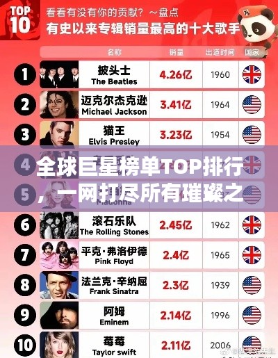 音乐、电影、体育等领域中,巨星的影响力无处不在,他们以其卓越的才华、努力和独特的魅力,赢得了全球观众的喜爱和尊敬,以下是一份世界巨星排名全部名单,以各领域中的代表性人物为主,不分先后。
