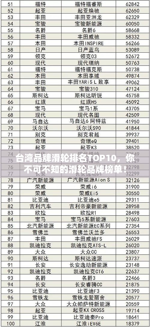 台湾,作为一个拥有丰富工业历史和技术的地区,其制造业在全球范围内享有盛名,滑轮产业也取得了长足的发展,本文将为您介绍台湾品牌滑轮排名前十名,带您了解这些优秀品牌的发展历程、产品特点以及市场影响力。
