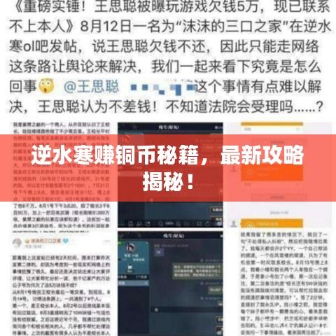 随着游戏《逆水寒》的持续火热,玩家们对于游戏中铜币的需求也日益增长,铜币在游戏中扮演着重要的角色,购买装备、技能升级等都离不开它,本文将为大家分享一些最新的赚铜币攻略,帮助大家在《逆水寒》的世界里更好地积累财富。