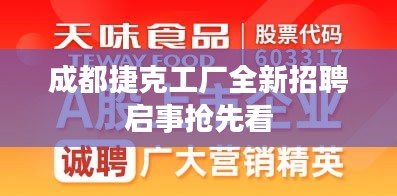 根据最新发布的招聘信息,成都捷克工厂目前招聘的岗位主要包括: