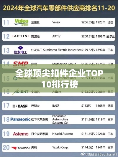 随着全球经济的不断发展和建筑行业的繁荣,扣件作为连接和固定的关键部件,其市场需求日益增长,本文将介绍国际扣件企业排名前十名,这些企业在全球范围内拥有较高的市场份额和良好的业绩。