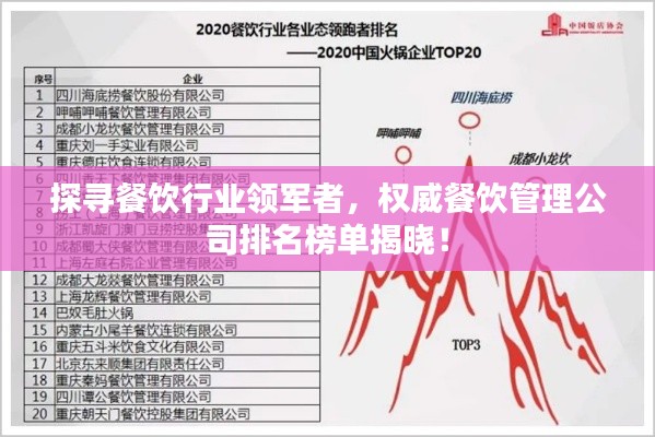 随着经济的发展和人们生活水平的提高,餐饮业日益繁荣,各类餐饮管理公司的竞争也日益激烈,在这样的背景下,寻找一家可靠的餐饮管理公司对餐饮业务的成功发展至关重要,本文将探讨当前餐饮行业内可靠的餐饮管理公司的排名,带您了解这些行业的领军者。