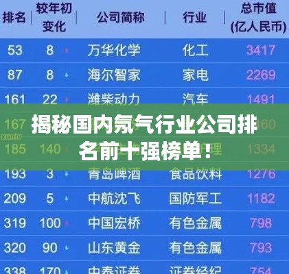 氖气,作为一种稀有气体,在电子、冶金、照明等领域有着广泛的应用,随着科技的不断发展,国内氖气市场逐渐壮大,涌现出了一批优秀的国产氖气公司,以下是氖气国产公司排名前十名,它们以卓越的品质和服务赢得了市场的认可。