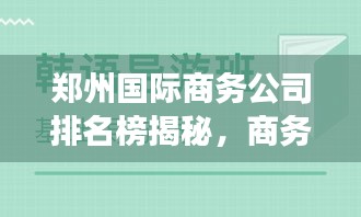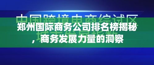 随着全球经济一体化的深入发展,商务活动日益频繁,各地的商务公司如雨后春笋般涌现,在这样的时代背景下,郑州国际商务公司以其独特的魅力和实力,逐渐在商务领域崭露头角,本文将为您揭晓郑州国际商务公司排名榜,带您洞悉郑州商务发展的力量。