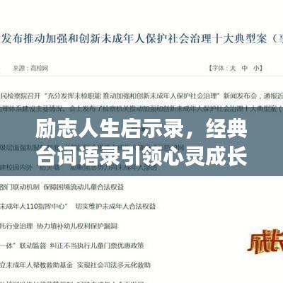 在人生的旅途中,我们时常需要一些励志的话语来鼓舞自己,激发前进的动力,经典台词语录,作为文化的积淀和智慧的结晶,往往能给予我们深刻的启示和无尽的力量,本文将从经典台词语录中汲取励志的精髓,助您在人生的道路上勇往直前。