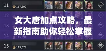 随着游戏的不断更新,女大唐角色在游戏中越来越受到玩家的喜爱,为了更好地提升女大唐的战斗能力,本文将为大家带来最新的加点攻略,通过合理的加点,可以让女大唐在游戏中发挥出更大的潜力。