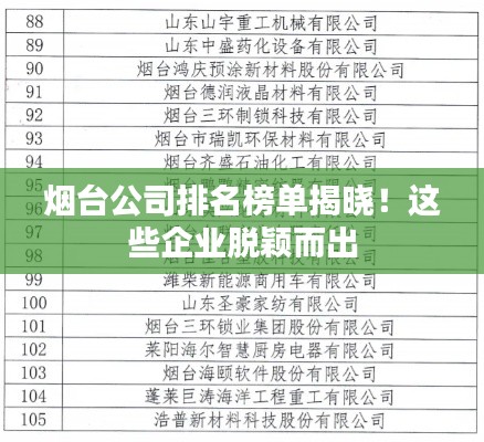 烟台市位于山东半岛的中心地带,是一个拥有悠久历史和文化的城市,近年来,烟台经济发展迅速,吸引了众多企业在此落户,这些公司在制造业、服务业、科技等领域取得了显著的成绩。
