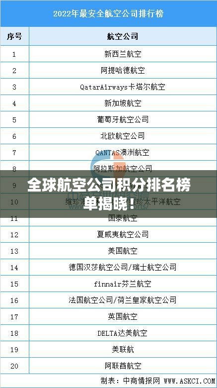 航空公司的积分排名反映了其在全球航空市场的地位与影响力,积分通常基于航空公司的航线覆盖范围、航班准点率、服务质量、盈利能力等多个因素综合评估得出,积分排名不仅体现了航空公司的综合实力,也反映了其运营效率和客户满意度。