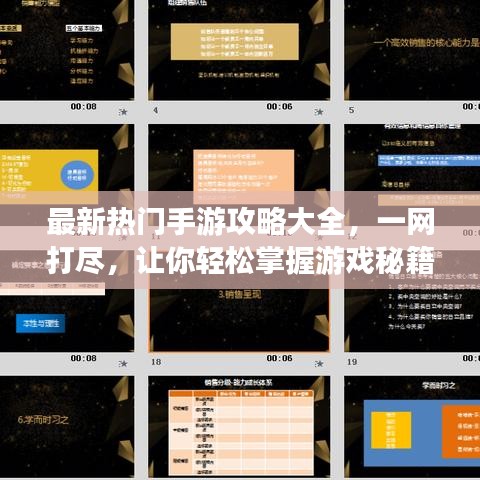 随着移动设备的普及和科技的飞速发展,手游市场日益繁荣,各类手游层出不穷,对于热爱手游的玩家来说,掌握最新热门手游的攻略是提升游戏体验、快速晋级的关键,本文将为大家带来一系列最新热门手游的攻略汇总,帮助玩家更好地享受游戏乐趣。