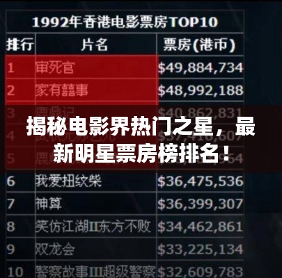 随着电影市场的繁荣,越来越多的明星凭借出色的演技和影响力在票房上取得了骄人的成绩,本文将根据最新的明星票房榜排名,为您揭示电影界的热门之星。