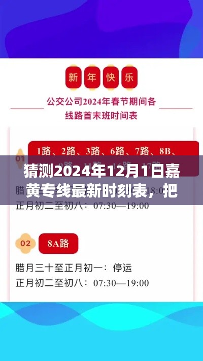 让我们共同期待2024年12月1日嘉黄专线新时刻表的揭晓,让我们一起在这张时刻表里找到属于我们的故事,感受变化带来的自信与成就感,让我们一起把握未来,共创辉煌!