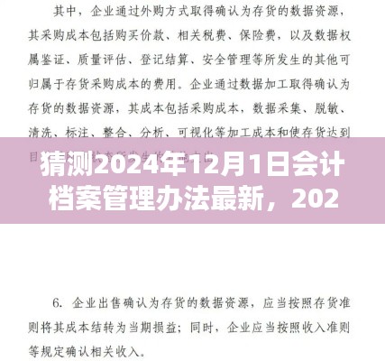 随着信息技术的飞速发展和数字化转型的深入推进,会计档案管理作为企业管理的重要环节也在不断地进行变革,预测至2024年12月1日,会计档案管理办法将再次迎来新的变革,本文将围绕这一新动向,对即将实施的会计档案管理办法进行详尽的评测介绍,涵盖产品特性、使用体验、与竞品对比以及目标用户群体分析。