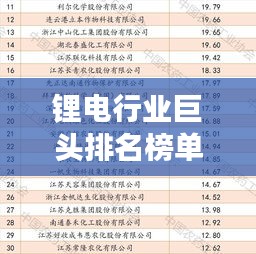 随着科技的飞速发展,锂电池行业在全球范围内迅速崛起,成为新能源领域的重要组成部分,本文将为您介绍锂电行业的最强公司排名,带您了解这些引领行业发展的领军企业。