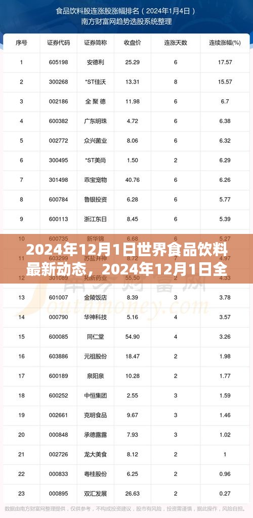 随着时代的进步和科技的发展,全球食品饮料行业日新月异,本文将带您领略2024年12月1日世界食品饮料的最新动态,探讨行业内的发展趋势与变革。