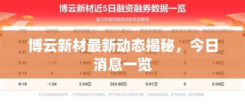 随着科技的不断进步,新材料领域日新月异,其中博云新材作为行业内的佼佼者,其最新消息备受关注,本文将围绕“今日博云新材最新消息”这一主题,为您深入解析博云新材的最新动态。