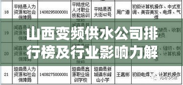 随着科技的进步和城市化进程的加快,变频供水系统在城市建设中的作用日益凸显,山西作为我国的重要省份,其供水行业的发展引人注目,本文将探讨山西变频供水公司的排名及其行业影响力。